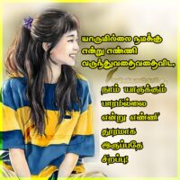 யாருமில்லை நமக்கு என்று எண்ணி வருந்துவதைவதைவிட, நாம் யாருக்கும் பாரமில்லை என்று எண்ணி தூரமாக இருப்பதே சிறப்பு!