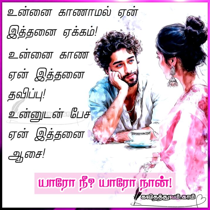 உன்னை காணாமல் ஏன் இத்தனை ஏக்கம்! உன்னை காண ஏன் இத்தனை தவிப்பு! உன்னுடன் பேச ஏன் இத்தனை ஆசை! யாரோ நீ? யாரோ நான்!