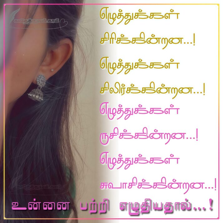எழுத்துக்கள் சிரிக்கின்றன…!எழுத்துக்கள் சிலிர்க்கின்றன…! எழுத்துக்கள் ருசிக்கின்றன…! எழுத்துக்கள் சுவாசிக்கின்றன…! உன்னை பற்றி எழுதியதால்…! 0 kavithathuvam.com on October 15, 2025 Share on Facebook Framed Photos ==>>CLICK HEAR TO VIEW<<== Lord Murugan Photos | Lord Shiva Photos | Radhakrishnan And Shivan Parvathi Photos | Jesus Photos | Mother Mary Photos | St Antony Photos | Bible Verse Photo Frames Download பார்த்தவர்கள் எண்ணிக்கை: 30 படித்து பிடித்ததை பகிர்ந்து படிக்க வையுங்கள்: Share Whatsapp Messenger Post Pinterest Print Share Email காதல் கவிதைகள்