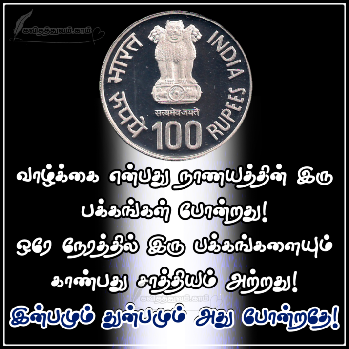 வாழ்க்கை என்பது நாணயத்தின் இரு பக்கங்கள் போன்றது! ஒரே நேரத்தில் இரு பக்கங்களையும் காண்பது சாத்தியம் அற்றது! இன்பமும் துன்பமும் அது போன்றதே! 0 kavithathuvam.com on January 3, 2025 Share on Facebook Framed Photos ==>>CLICK HEAR TO VIEW<<== Lord Murugan Photos | Lord Shiva Photos | Radhakrishnan And Shivan Parvathi Photos | Jesus Photos | Mother Mary Photos | St Antony Photos | Bible Verse Photo Frames Download பார்த்தவர்கள் எண்ணிக்கை: 171 படித்து பிடித்ததை பகிர்ந்து படிக்க வையுங்கள்: Share Whatsapp Messenger Post Pinterest Print Share Email வாழ்க்கை கவிதைகள் இன்பம்துன்பம்பணம்
