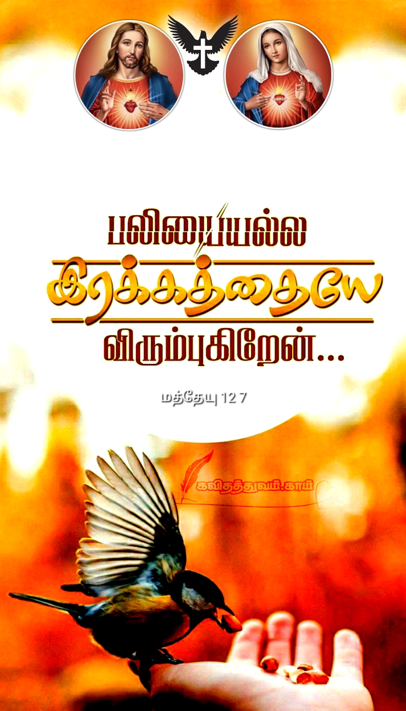 பலியை அல்ல இரக்கத்தையே விரும்புகிறேன். மத்தேயு 12:7 0 kavithathuvam.com on January 1, 2025 Share on Facebook Framed Photos ==>>CLICK HEAR TO VIEW<<== Lord Murugan Photos | Lord Shiva Photos | Radhakrishnan And Shivan Parvathi Photos | Jesus Photos | Mother Mary Photos | St Antony Photos | Bible Verse Photo Frames Download பார்த்தவர்கள் எண்ணிக்கை: 74 படித்து பிடித்ததை பகிர்ந்து படிக்க வையுங்கள்: Share Whatsapp Messenger Post Pinterest Print Share Email பைபிள் வசனங்கள்வாக்குத்தத்த வசனங்கள்