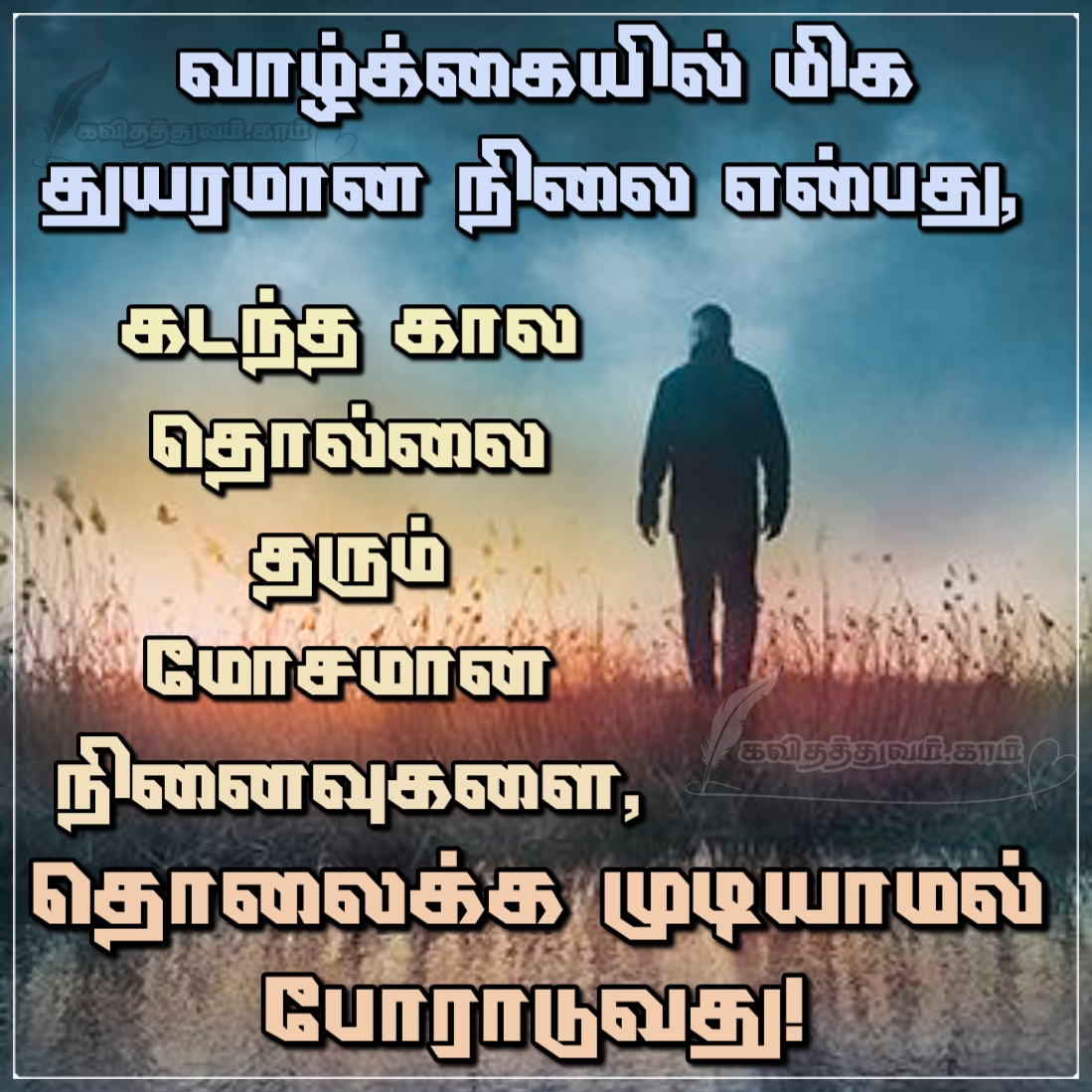 வாழ்க்கையில் மிக துயரமான நிலை என்பது கடந்த கால தொல்லை தரும் மோசமான நினைவுகளை தொலைக்க முடியாமல் போராடுவது!