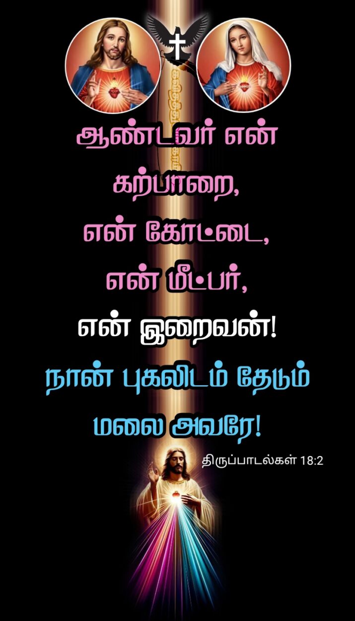ஆண்டவர் என் கற்பாறை, என் கோட்டை, என் மீட்பர், என் இறைவன்! நான் புகலிடம் தேடும் மலை அவரே! திருப்பாடல்கள் 18:2