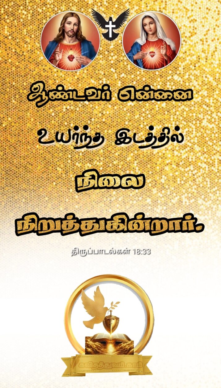 ஆண்டவர் என்னை உயர்ந்த இடத்தில் நிலை நிறுத்துகின்றார். திருப்பாடல்கள் 18:33 0 kavithathuvam.com on January 4, 2025 Share on Facebook Framed Photos ==>>CLICK HEAR TO VIEW<<== Lord Murugan Photos | Lord Shiva Photos | Radhakrishnan And Shivan Parvathi Photos | Jesus Photos | Mother Mary Photos | St Antony Photos | Bible Verse Photo Frames Download பார்த்தவர்கள் எண்ணிக்கை: 95 படித்து பிடித்ததை பகிர்ந்து படிக்க வையுங்கள்: Share Whatsapp Messenger Post Pinterest Print Share Email பைபிள் வசனங்கள்வாக்குத்தத்த வசனங்கள்