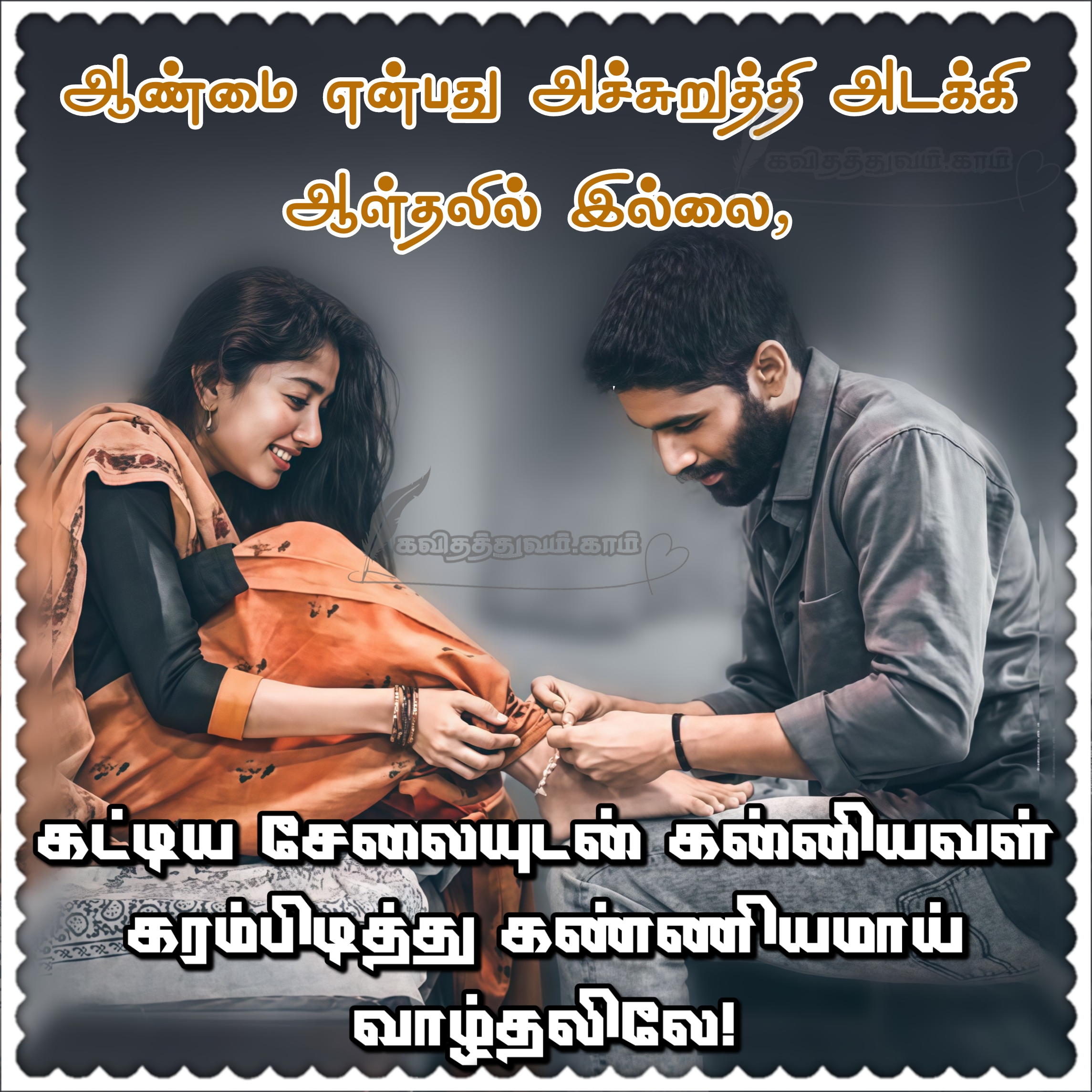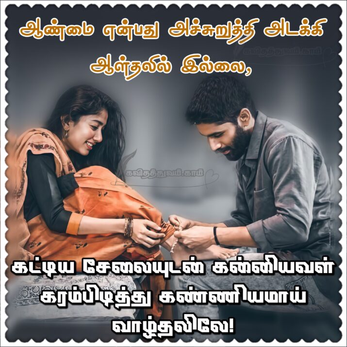ஆண்மை என்பது அச்சுறுத்தி அடக்கி ஆள்தலில் இல்லை, கட்டிய சேலையுடன் கன்னியவள் கரம்பிடித்து கண்ணியமாய் வாழ்தலிலே!