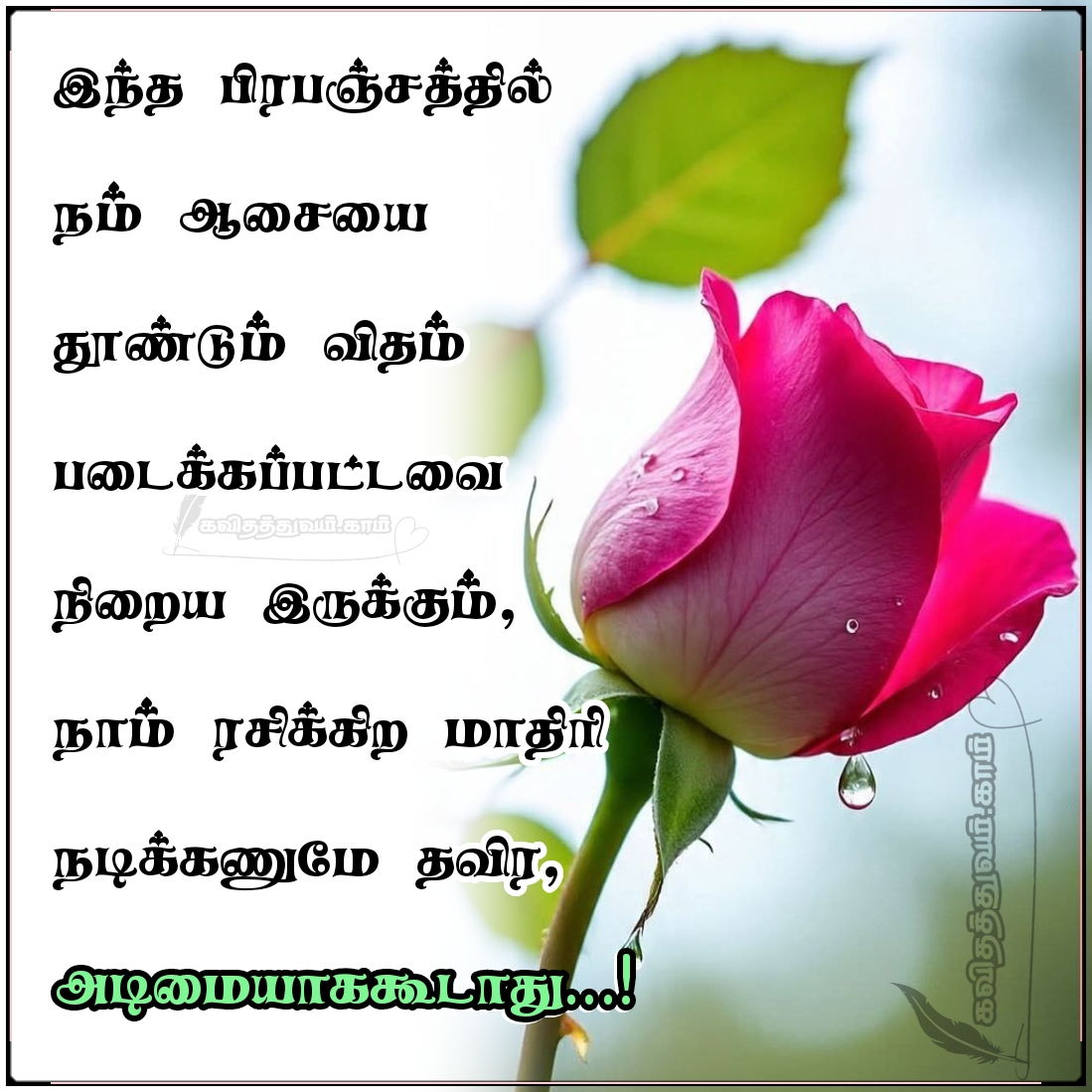 இந்த பிரபஞ்சத்தில் நம் ஆசையை தூண்டும் விதம் படைக்கப்பட்டவை நிறைய இருக்கும். நாம் ரசிக்கிற மாதிரி நடிக்கணுமே தவிர, அடிமையாககூடாது…! 0 kavithathuvam.com on November 29, 2025 Share on Facebook Framed Photos ==>>CLICK HEAR TO VIEW<<== Lord Murugan Photos | Lord Shiva Photos | Radhakrishnan And Shivan Parvathi Photos | Jesus Photos | Mother Mary Photos | St Antony Photos | Bible Verse Photo Frames Download பார்த்தவர்கள் எண்ணிக்கை: 56 படித்து பிடித்ததை பகிர்ந்து படிக்க வையுங்கள்: Share Whatsapp Messenger Post Pinterest Print Share Email வாழ்க்கை கவிதைகள் ஆசை